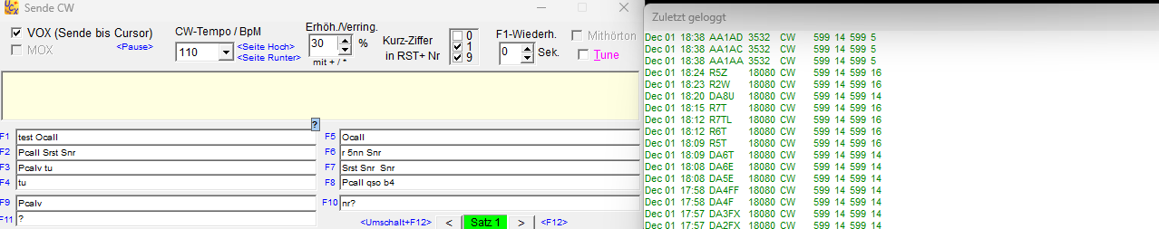 Als Anregung hierzu erwähnte ein OV-Kollege das bei "seinem" Log es eine Korrektur-Möglichkeit gibt, welche ein ausgebessertes Call erkennt und vor dem Loggen automatisch sendet bevor es zum CQ TEST übergeht