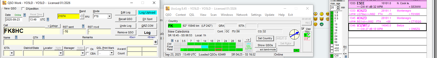 There are a few countries, which show up tagged correctly to New Caledonia in the DXCluster window, but when doubleclicking, in the "main" window it seems it doesn't map it to New Caledonia, but rather "unknown", until I manually map it to "new caledonia". Weirdly, in the "set country" window, it does find and preselect New Caledonia.