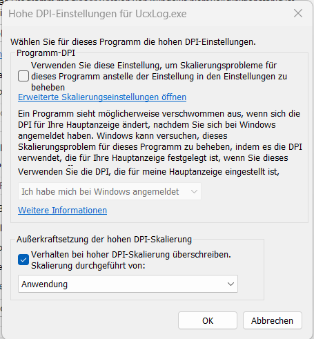 Ohne High DPI haken ist alles OK, aber unscharf.