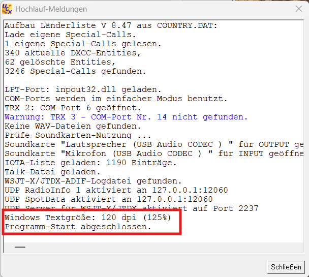 In UCXLog selbst steht die Skalierung auf 100%.