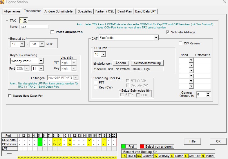 Nun hatte ich mal versucht über den 2. WINKEYPORT einen normalen K3NG Keyer anzuschliessen, das FLEX RIG tut mir nicht den Gefallen die TEXTE aus dem CW Sendefenster zu Übertragen hat die COM 11 der WK