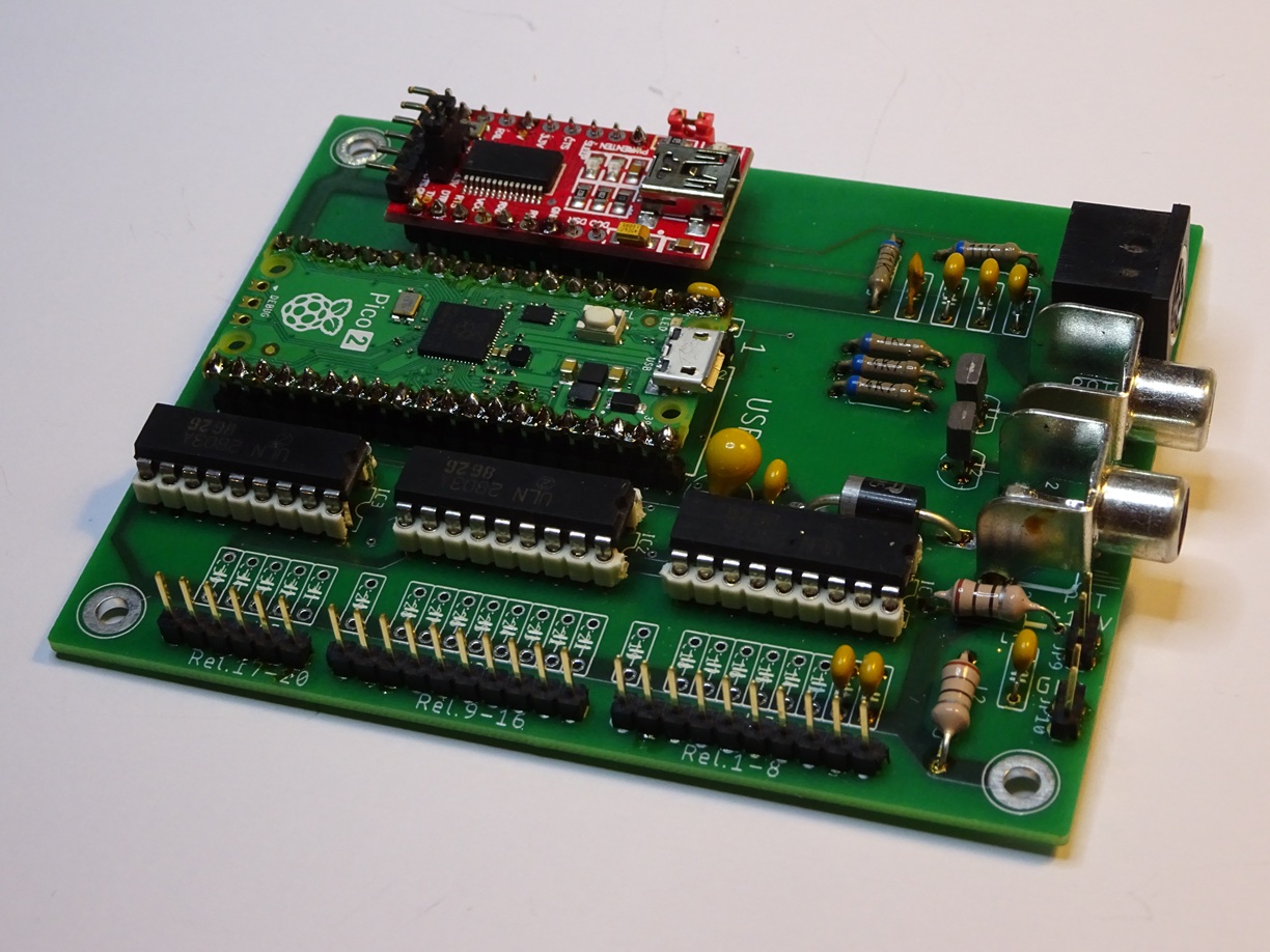 Anschluß und Stromversorgung über 1 USB-Kabel und ein 12V-Anschluß für Relais.